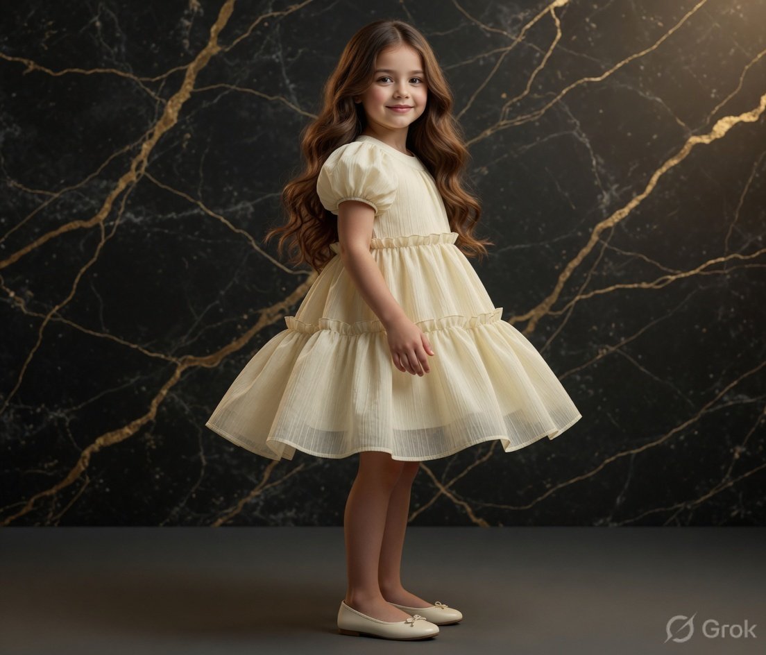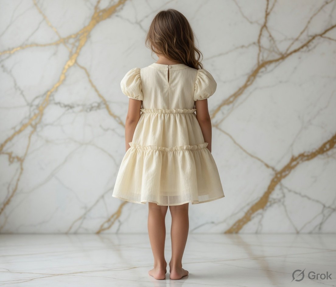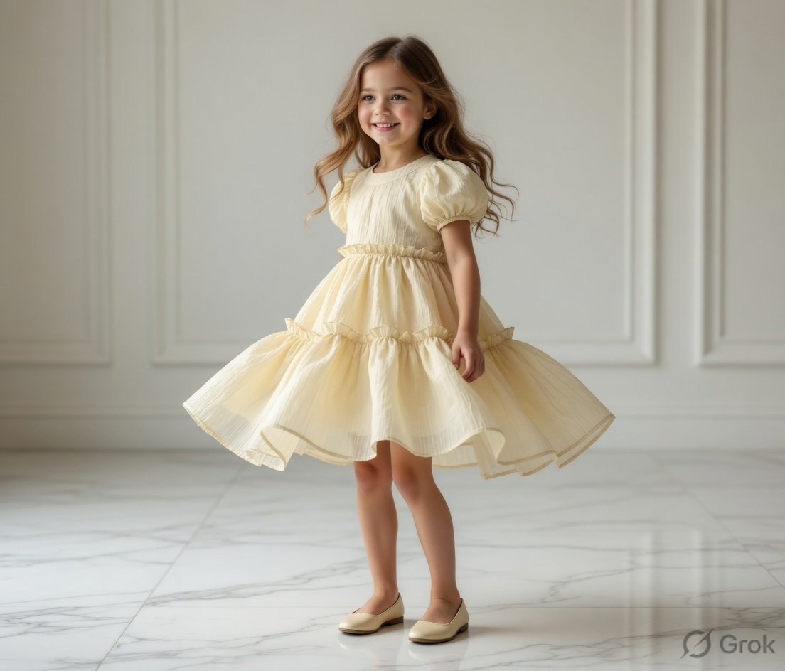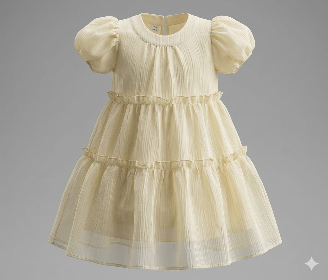 Let her shine in this enchanting cream-colored party dress, designed for elegance and grace. This dress features a beautiful multi-layered design that creates a soft, voluminous look perfect for weddings, birthdays, or festive celebrations.