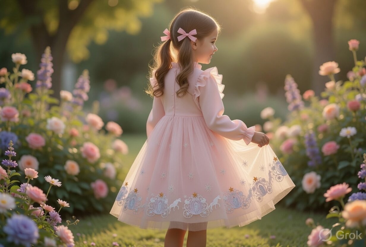 Tiered Design: Multiple ruffled layers for a full, princess-style skirt.